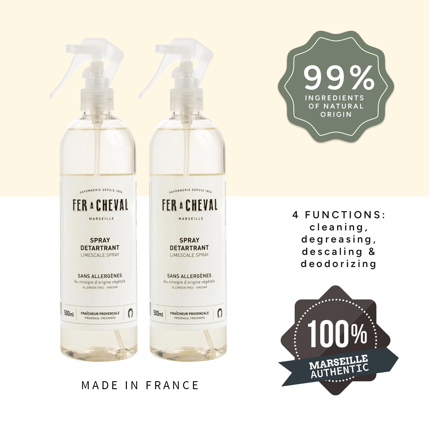 Fer à Cheval Bathroom Limescale Spray 500 ml/ 16.9 fl oz, 4-in-1 Cleaner with Natural Ingredients