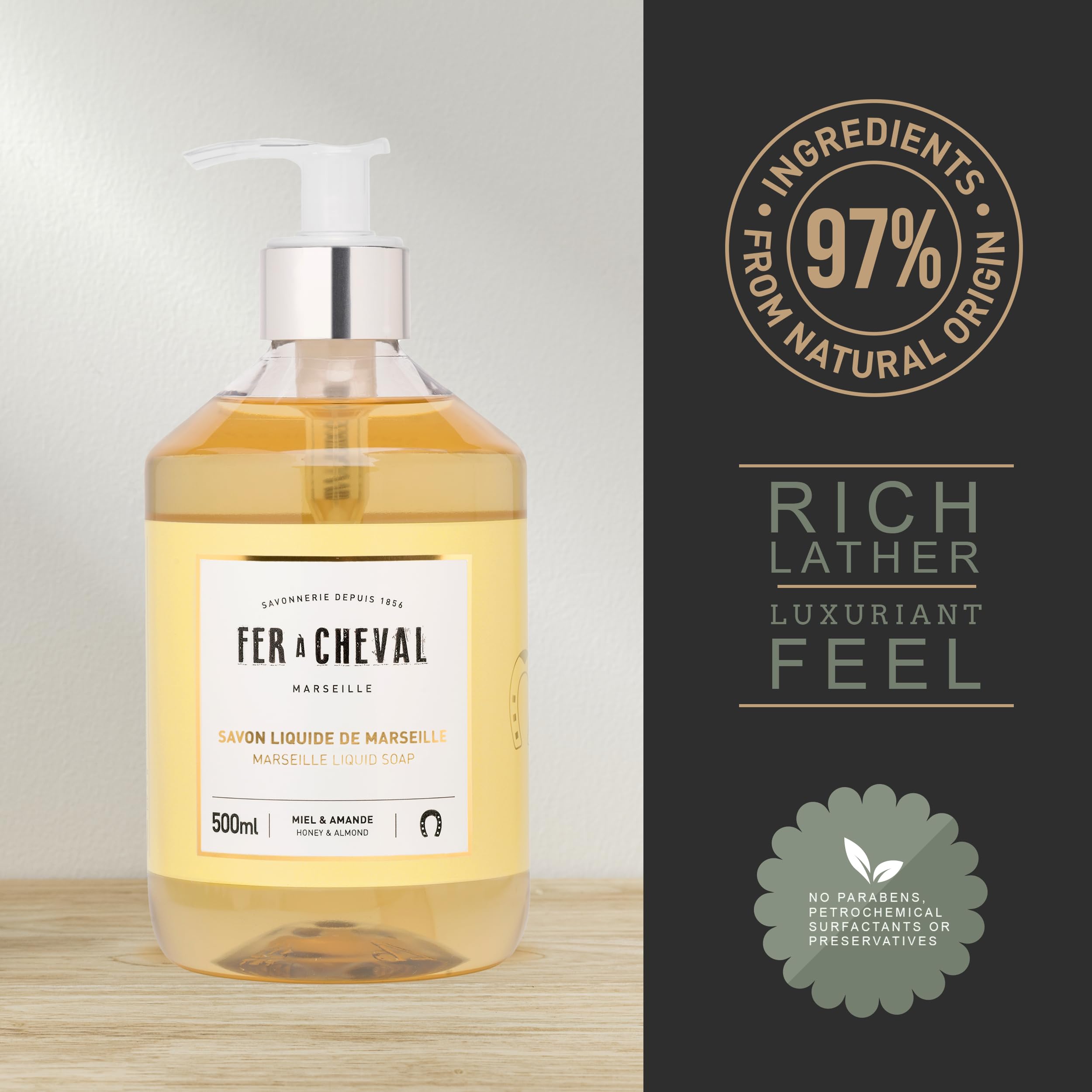 - Authentic French Liquid Soap; Traditional Marseille soap crafted in France; trusted Fer à Cheval quality for daily use