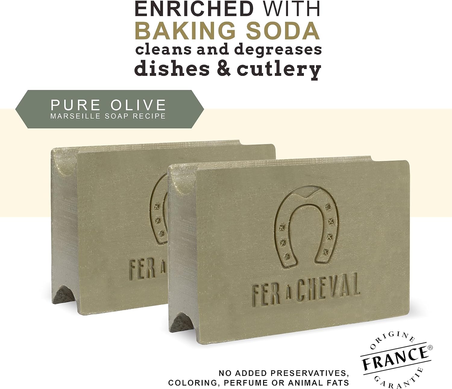 Fer à Cheval Marseille Dishwashing Soap, Olive Oil Based, Made in France - Bar Dish Soap, 225 g/7.94 oz, 2 Pack—