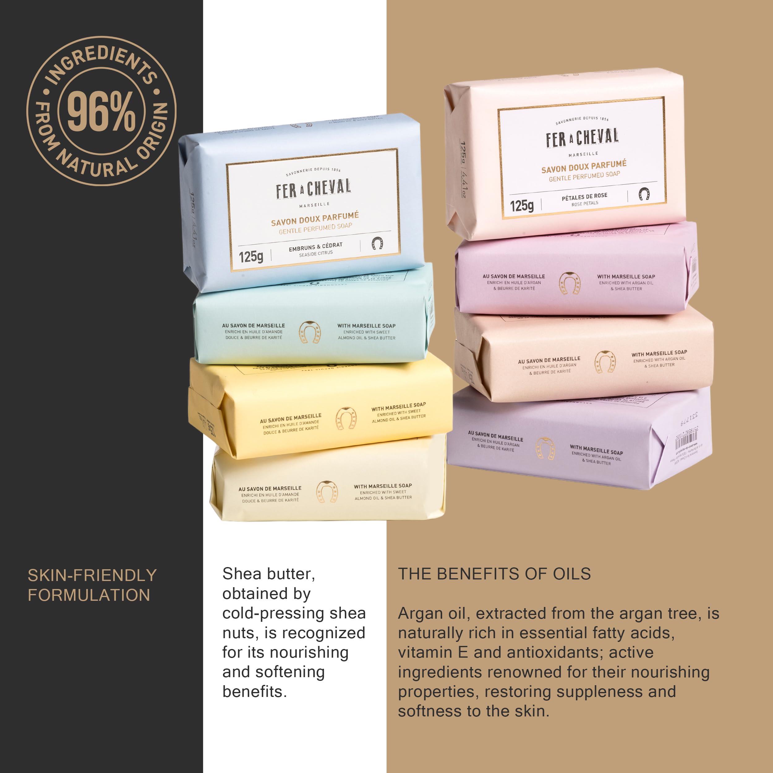 Fer à Cheval Organic Gentle Perfumed Soap Bar – All-Natural, Hypoallergenic, SLS & Paraben-Free, Moisturizing & Luxurious Lather, 125g/4.41oz